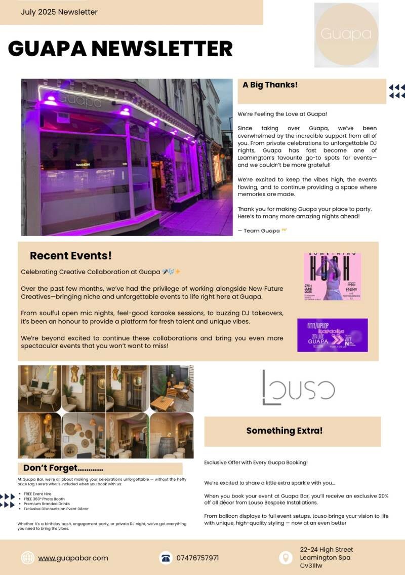 Stay up-to-date with the latest news, exclusive events, and special offers from Guapa Bar, Royal Leamington Spa's premier event space! Sign up for our newsletter and be the first to know about what's happening.